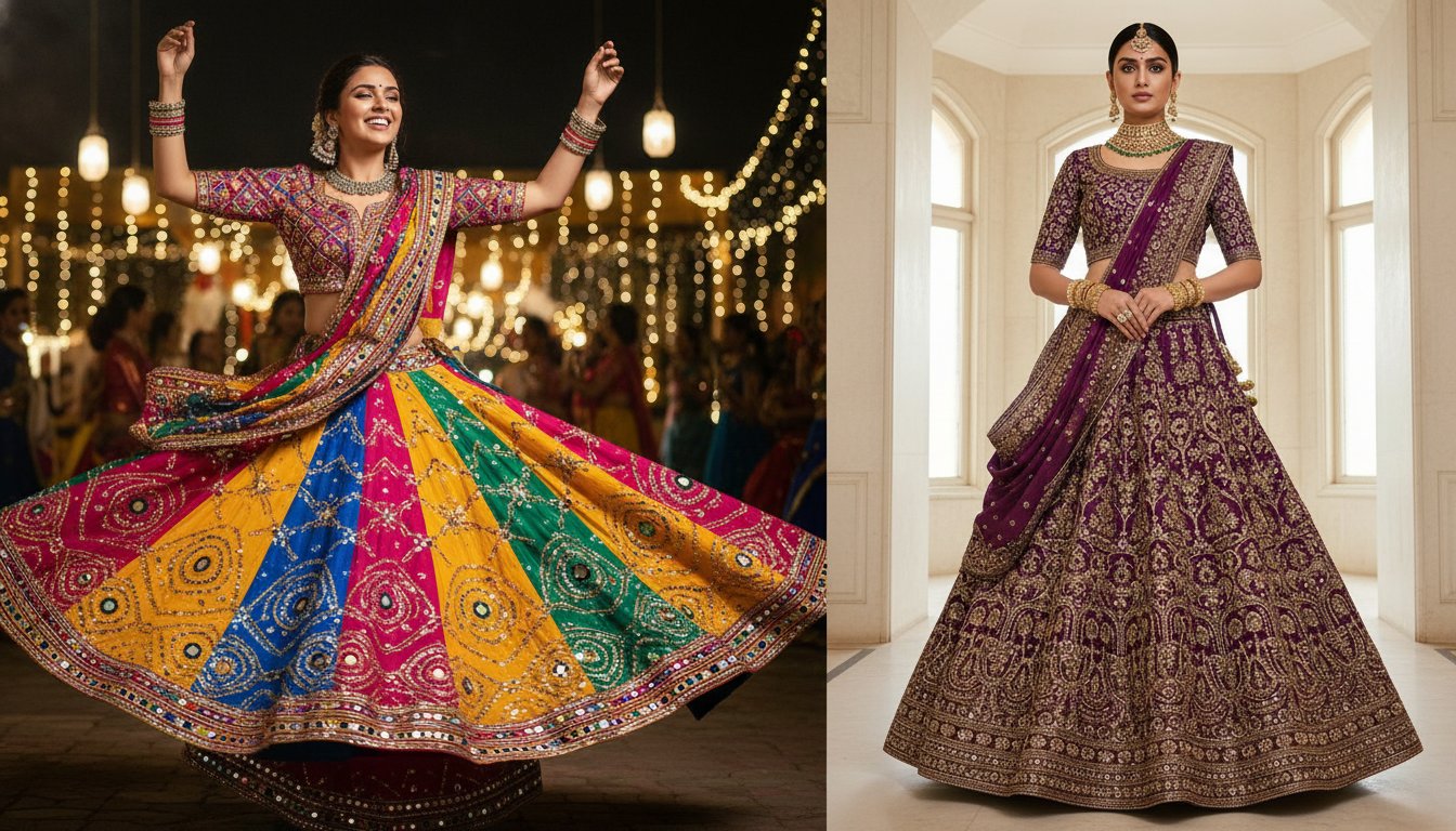 | Primary Occasion | Navratri, Garba, folk festivals, and daytime cultural events. | Weddings, grand receptions, and formal evening celebrations. |